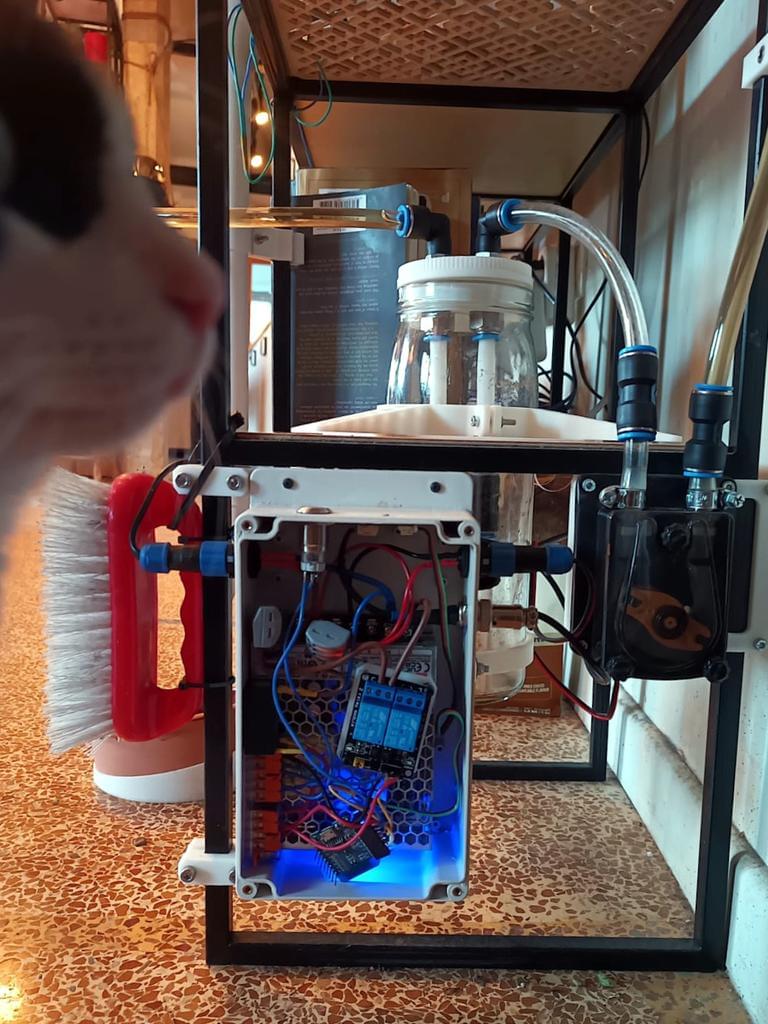 This module detects water in the dumping container and engages the pump to pressurize it so that it can be moved to drainage